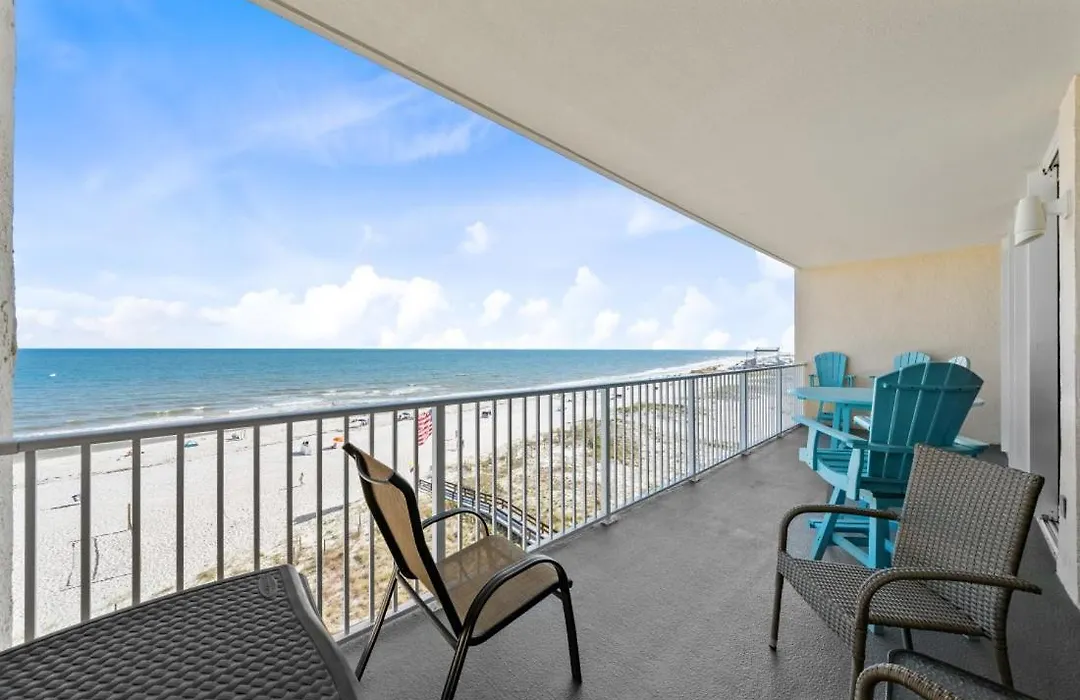 Om van uw vakantie in Gulf Shores te genieten, verblijf in 3-slaapkamer San Carlos 603 Gulf Shores appartement, gelegen op ongeveer 250 meter van Live Webcam @ Sea-N-Suds en op slechts 13 minuten lopen van Gulf Shores Public Beach. Gasten die in het appartement van 149 m² verblijven, worden getrakteerd op een terras met een kust uitzicht op de zee.